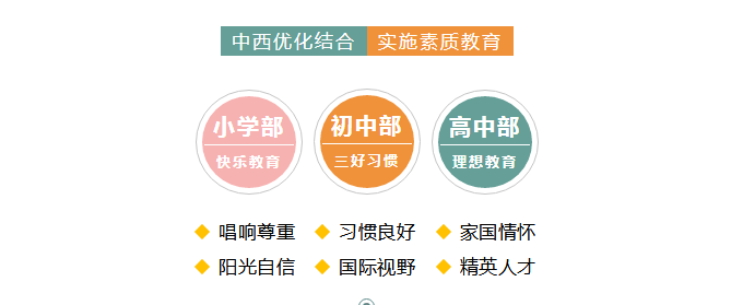小学阶段开设40余种素质培养课程,如高尔夫、航模、3D打印、国际象棋、英语配音、烘焙、钢琴、舞蹈等。另,每年有研学、春游、秋游、拓展训练、海外游学冬夏令营等社会实践课程,满足学生个性化需求,为培养未来精英奠定基础;同时实施"快乐教育"、 "感恩教育"、"礼仪教育" 、“规则教育" 、"习惯养成教育" ,让孩子在尊重和快乐中健康成长。