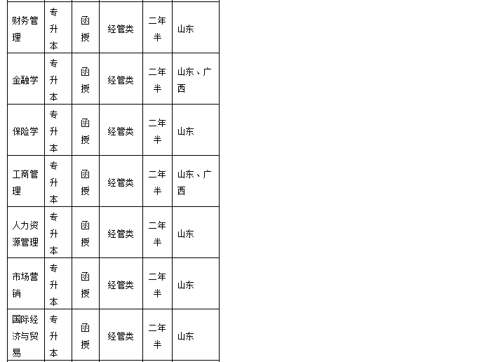 山东财经成人高等教育招生专业