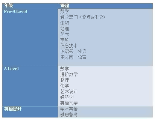 国际高中项目学期为三年,将开设英国Pre-A Level及A Level的课程,以下通常科目将根据学生的具体需求而调整: