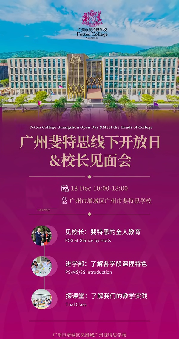 广州斐特思公学相比以考试为导向的英语教学,斐特思更注重英语语言习得,帮助学生用英语表达自己、用英语交流、用英语思考。该校是英国斐特思公学和中国**的K-12教育集团博实乐在一致的办学理念和愿景指导下共同筹建的,属于集团办学,教学质量值得肯定,该校预计12月18日举办线下开放日,以下是活动内容: