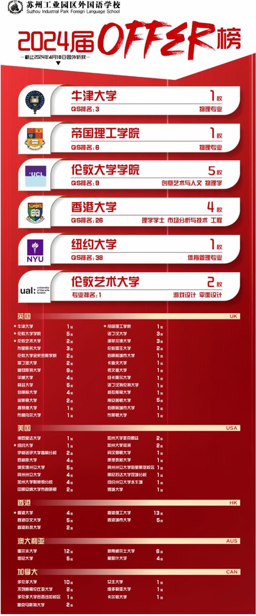 截止5月8日,2024届园外国际高中生已收获近200份名校Offer,*括牛津大学、帝国理工学院、伦敦大学学院、伦敦艺术大学、墨尔本大学、悉尼大学、爱丁堡大学、香港大学、曼彻斯特大学、纽约大学、香港中文大学等。