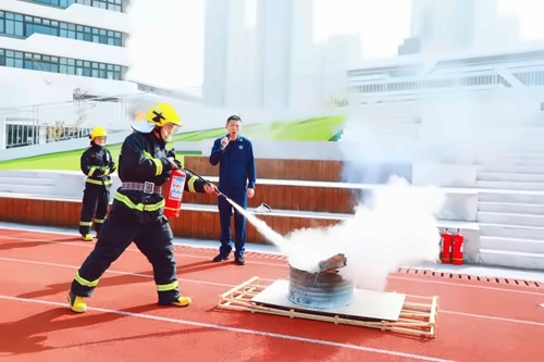 11月9日是全国消防安全日,重视消防安全,人人有责。南京金地未来学校组织全校开展了一场理论与实践结合的沉浸式消防演习,并邀请了江北新区的消防官兵走进校园,向同学们近距离展示了“火焰蓝”的力量与担当。